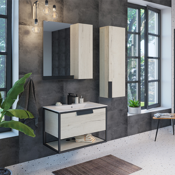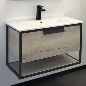 Тумба с раковиной Comforty Бонн 75 графит/дуб дымчатый