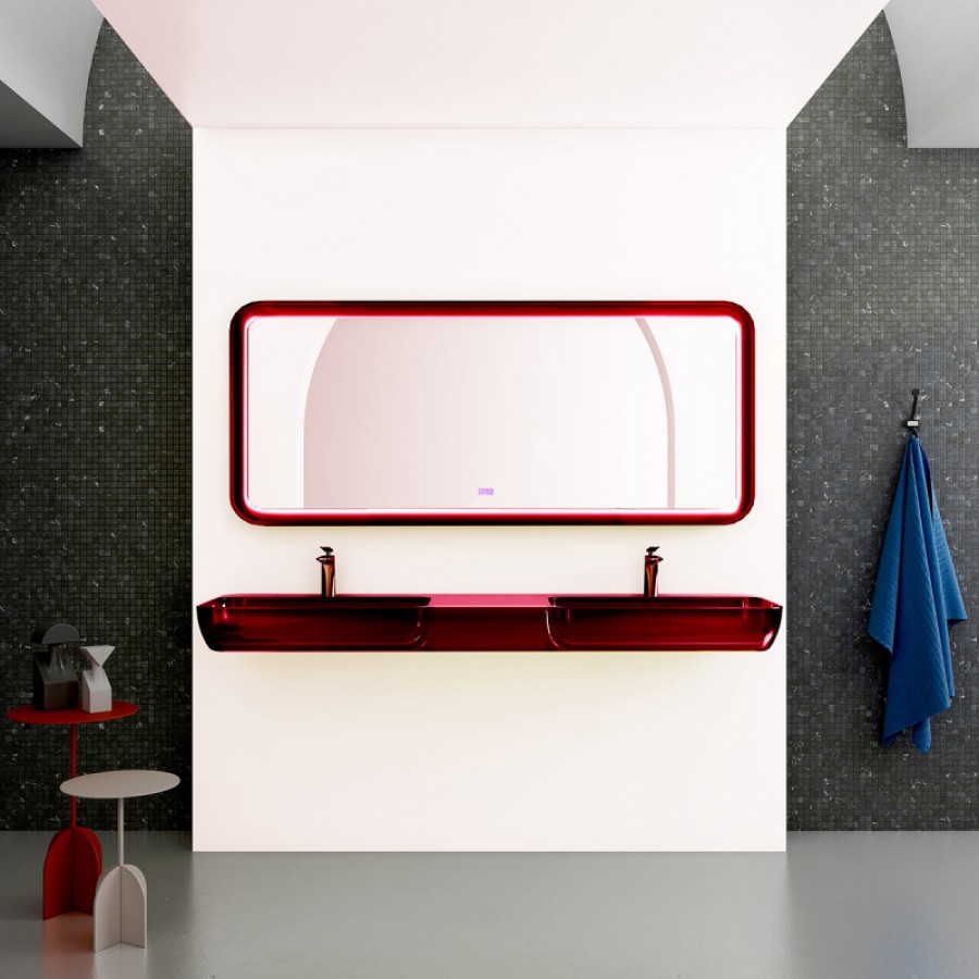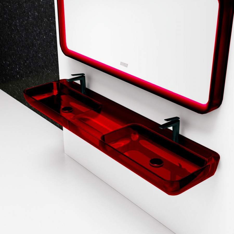 Раковина подвесная прозрачная ABBER Kristall AT2807Rubin двойная, красная