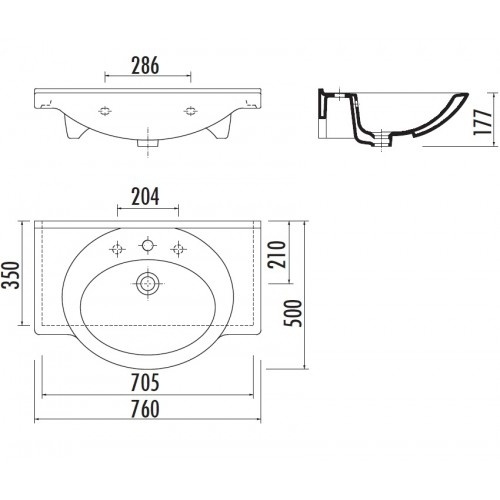 Раковина встраиваемая Creavit Etol ET075 76х50