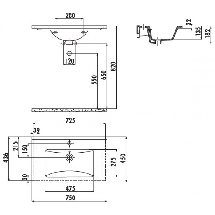 Раковина встраиваемая Creavit Su SU075 75х45