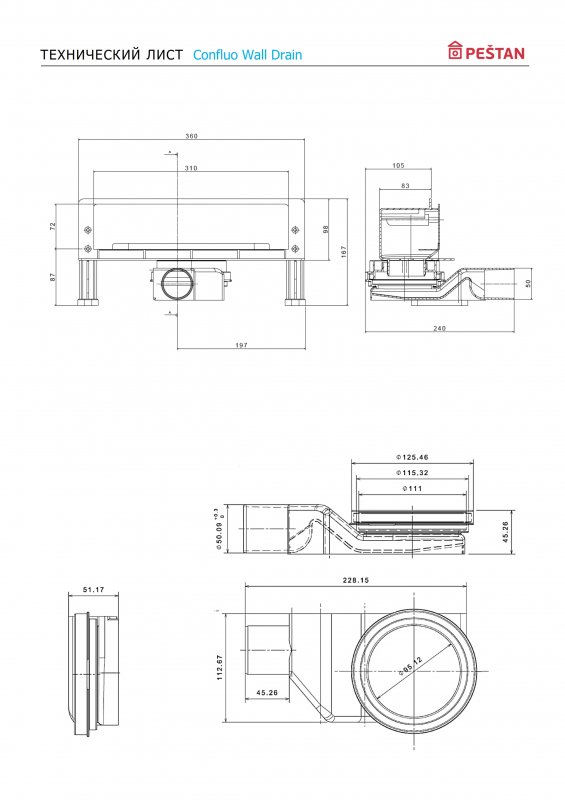 Пристенный трап Pestan Confluo Wall 360