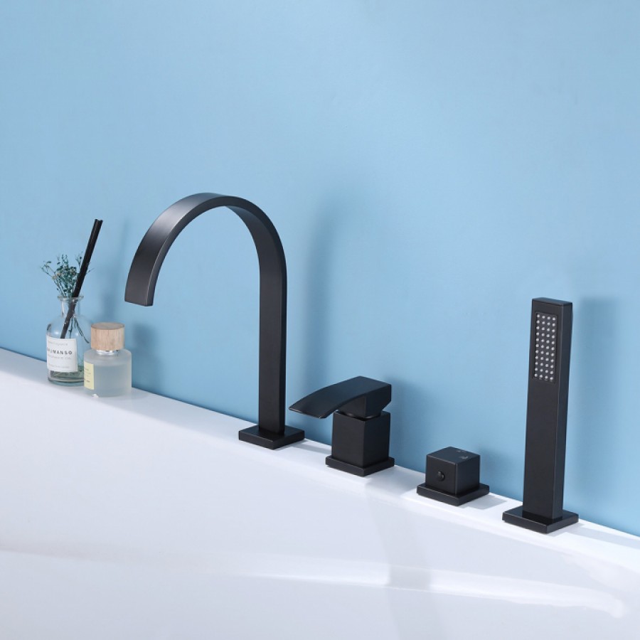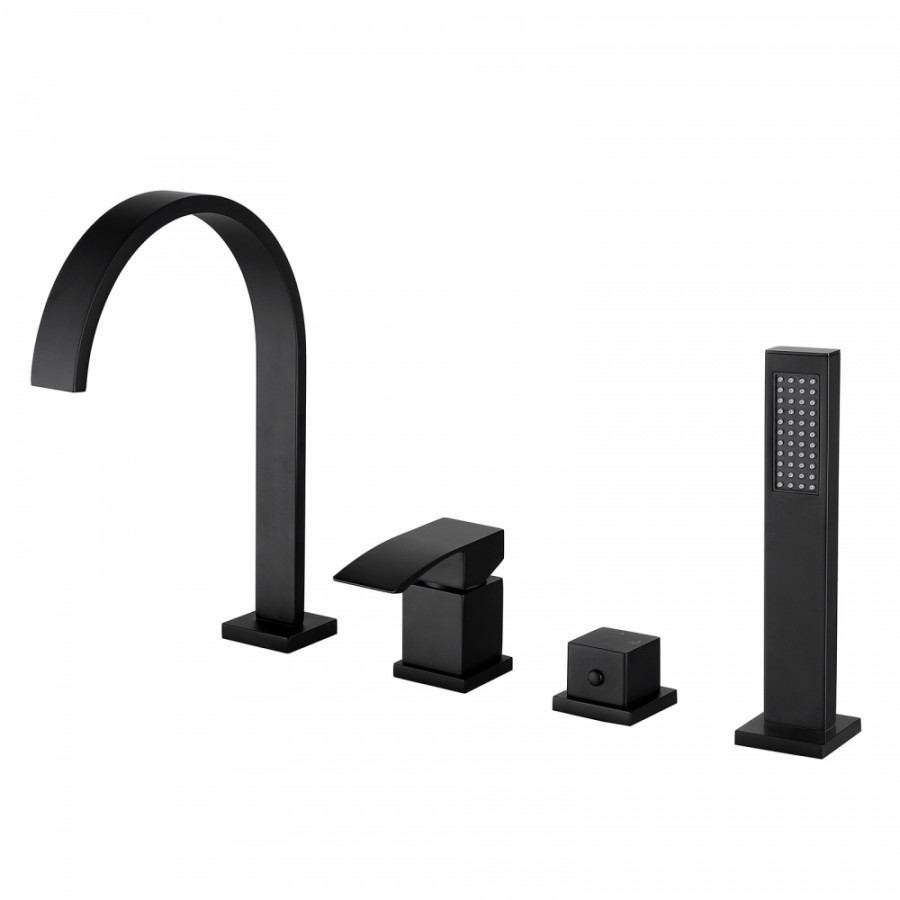 Смеситель ABBER Wasserfall AF8613B на борт ванны, черный матовый