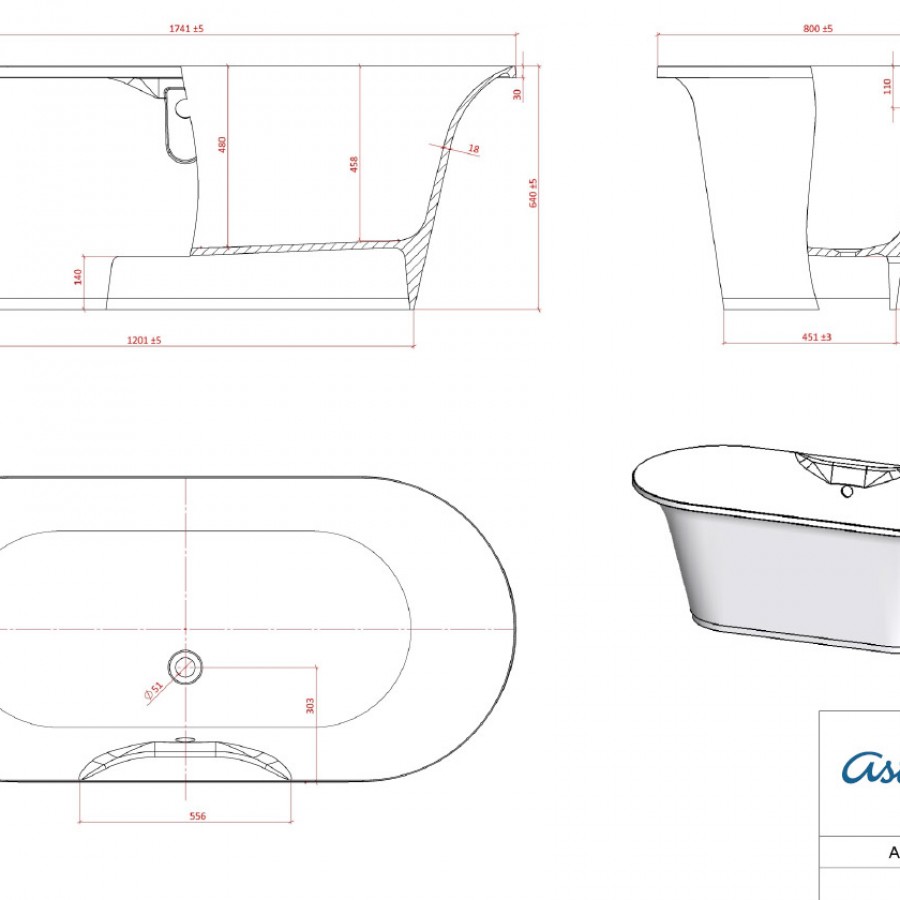 Ванна из литьевого мрамора Asrta-Form Монако 174х80 см