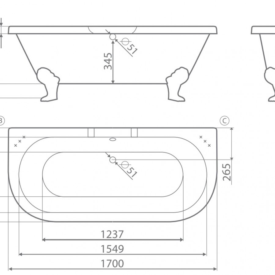Ванна из литьевого мрамора Esse Capri 170x75