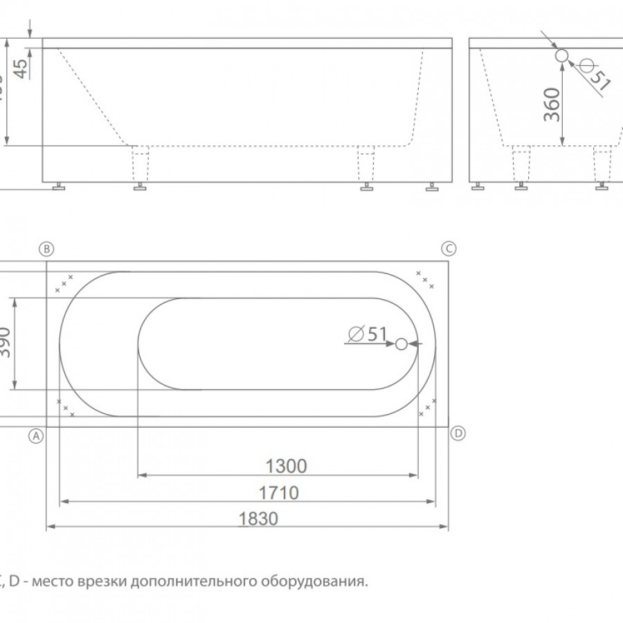 Ванна из литьевого мрамора Esse Cyprus 183x70