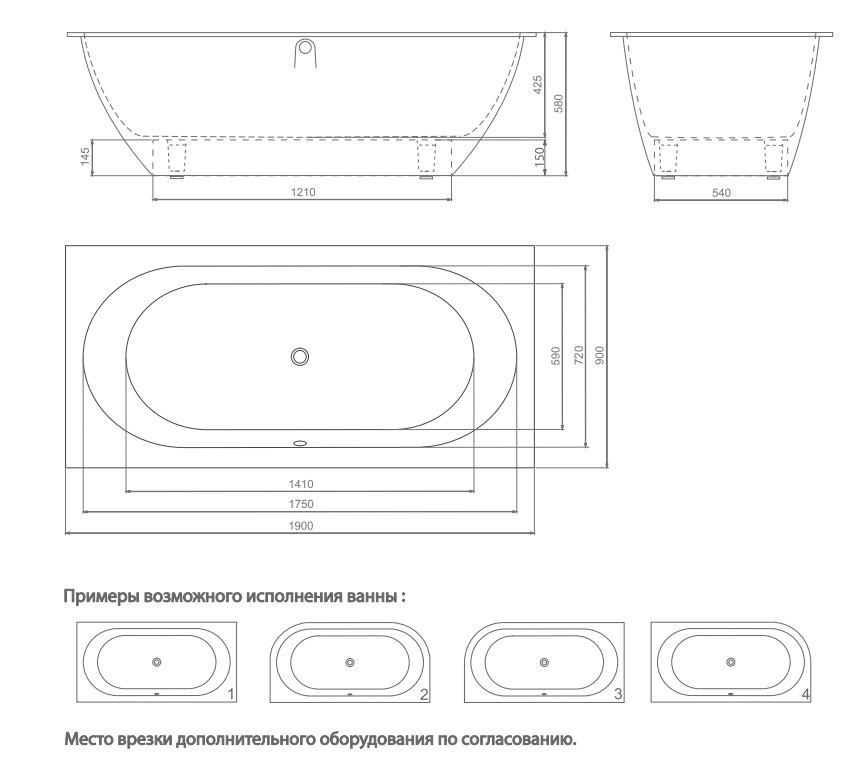 Ванна из литьевого мрамора Esse Palawan 190x90