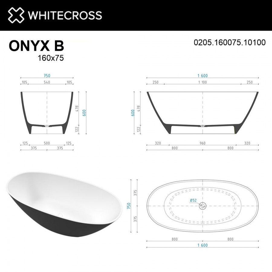 Ванна Whitecross Onyx B 0205.160075.10100 165x75