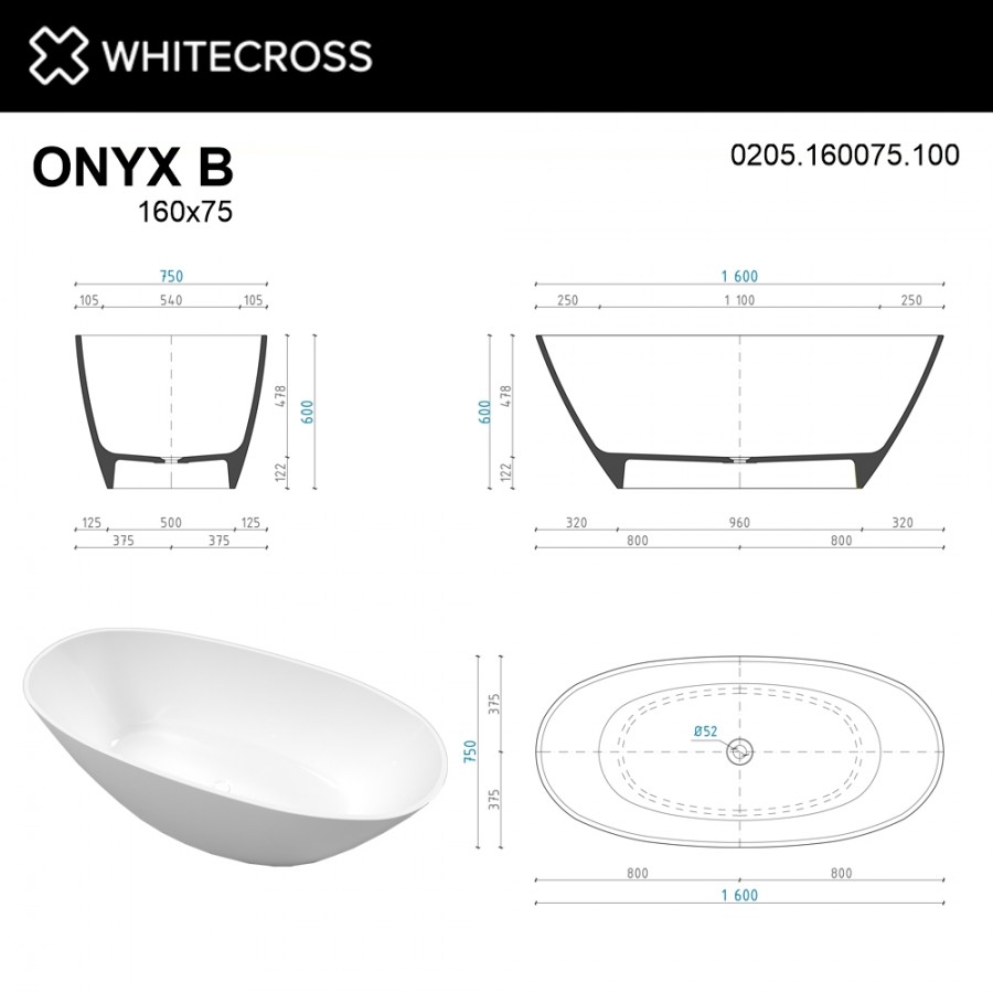 Ванна Whitecross Onyx B 0205.160075.200 165x75