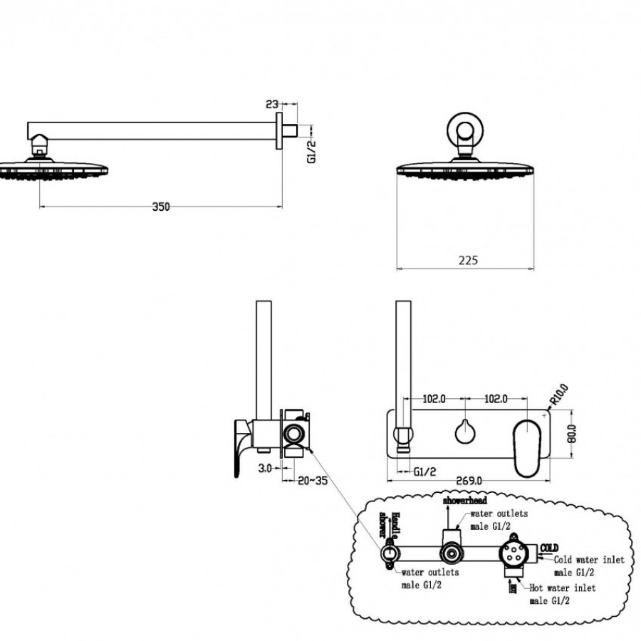 Смеситель встроенный для душа с верхней лейкой Boheme Spectre 454-B