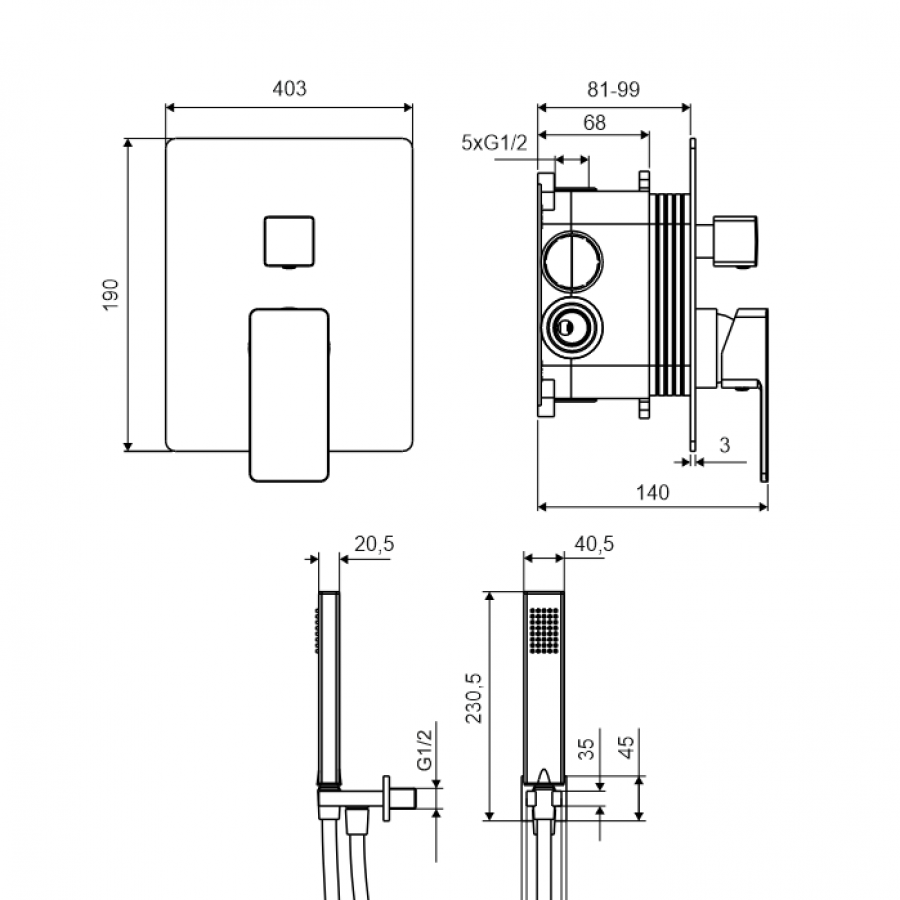 Система для душа скрытого монтажа Excellent Keria AREX.SET.2047BL