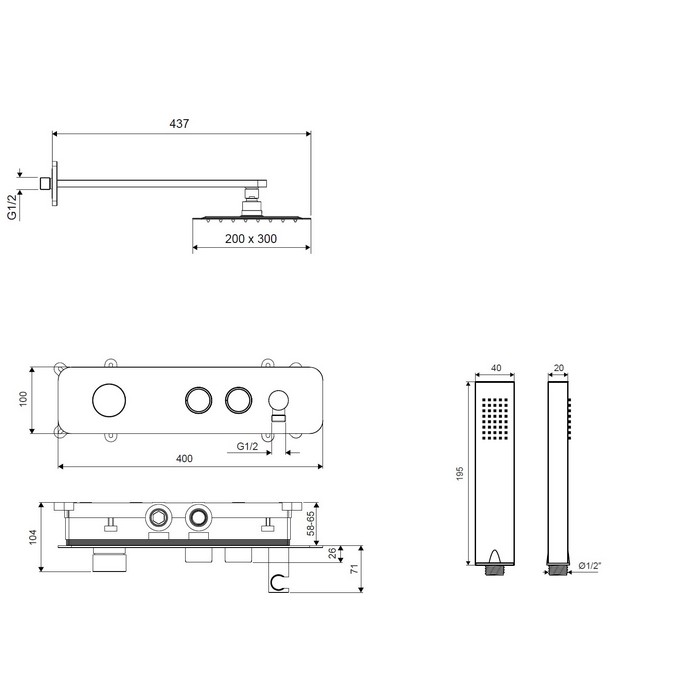 Система для душа скрытого монтажа Excellent Krotos AREX.SET.8035CR